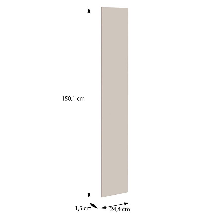 Wymiary frontu 24,4 cm szerokości, 150,1 cm wysokości i 1,5 cm głębokości umożliwiają łatwe dopasowanie do szaf modułowych systemu Moduklix. Wykonanie z płyty wiórowej laminowanej zapewnia stabilność i wytrzymałość, a waga 3,3 kg ułatwia montaż i codzienne użytkowanie.