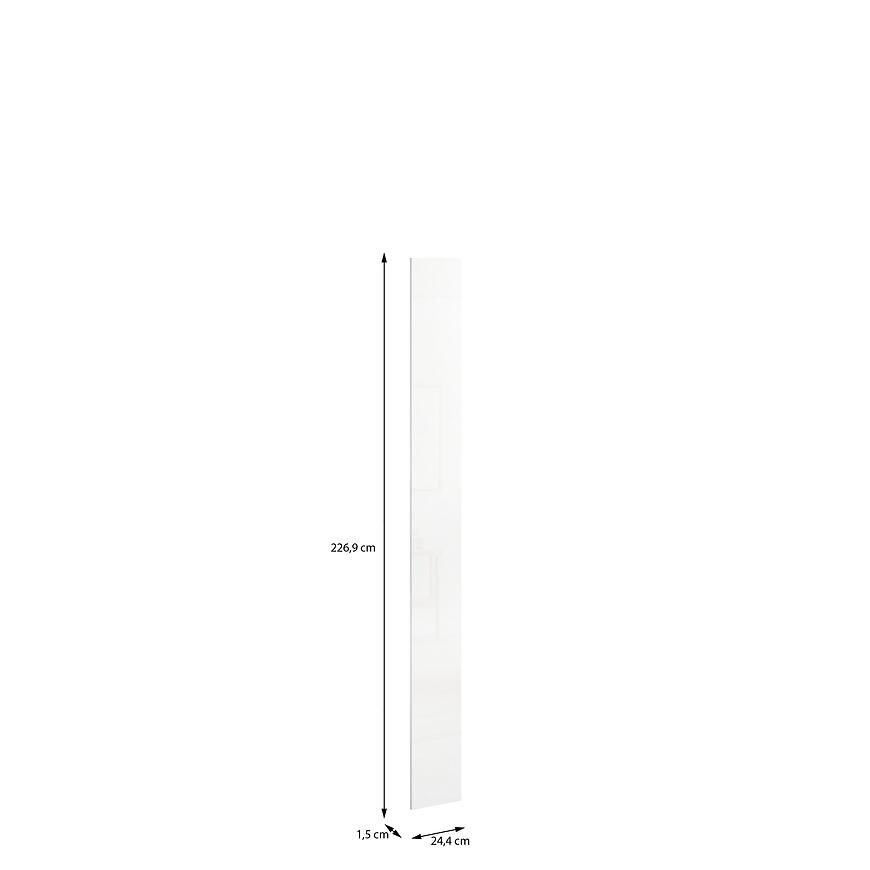 Front ma 24,4 cm szerokości, 226,9 cm wysokości i 1,5 cm głębokości, zapewniając estetyczne i praktyczne wykończenie wysokiej szafy. Wykonany z płyty wiórowej laminowanej, łączy trwałość z lekką konstrukcją, a waga 5,3 kg ułatwia montaż.