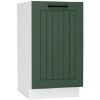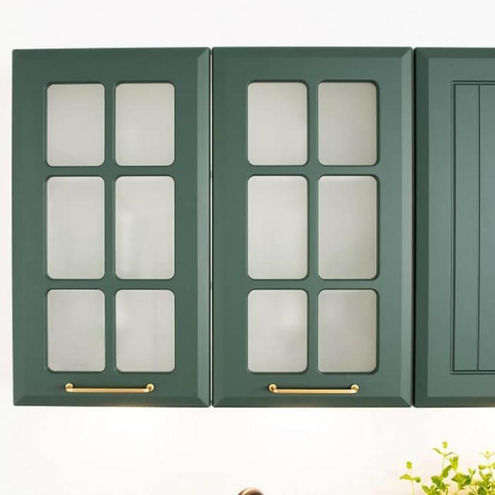 Kolekcja szafek kuchennych Irma może być nie tylko funkcjonalnym wykończeniem Twojej kuchni, ale także estetycznym dopełnieniem wnętrza. Ciemno zielone matowe fronty idealnie kontrastują z białym korpusem, tworząc przytulne, ale także pełne charakteru wnętrze. Zielony kolor frontów będzie świetnie korespondował z drewnianym blatem, a także z betonem, marmurem czy inny surowym materiałem. Dodatkowy element ozdobny szafek stanowią lamele umieszczone na frontach, dodając im przy tym uroku, jednocześnie wpisując się idealnie w nowoczesne czy klasyczne aranżacje. Różnorodne gałki i uchwyty dostepne w naszej ofercie świetnie dopełnią całość, stanowiąc ciekawy akcent. Cichy domyk, który jest ujęty w zestawie podniesie komfort codziennego użytkowania mebli.