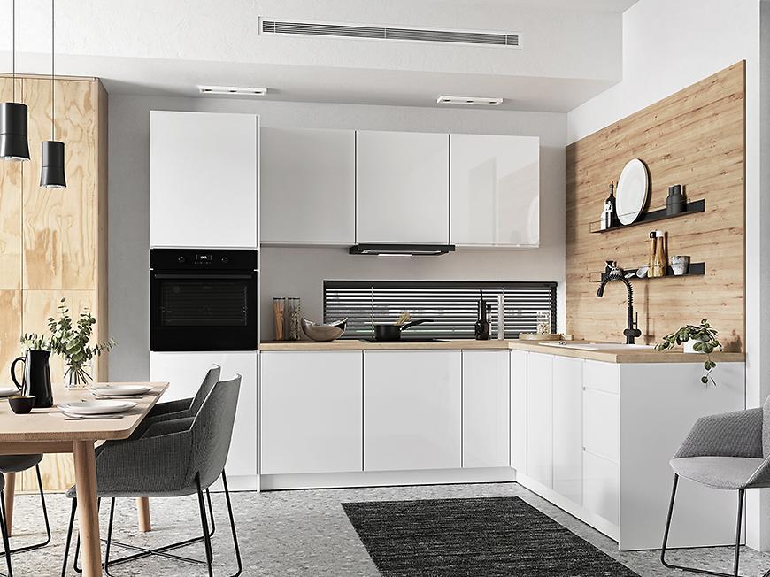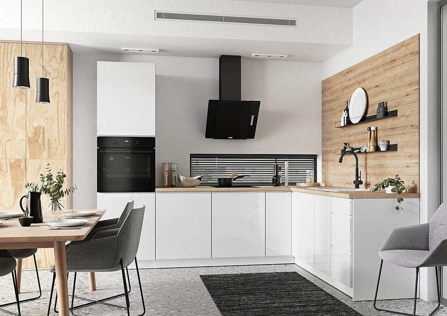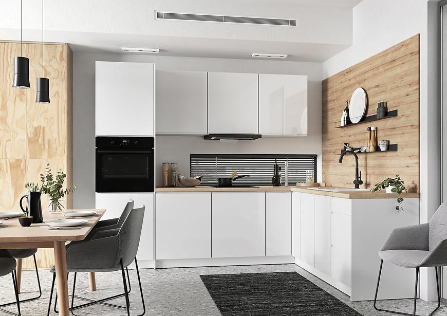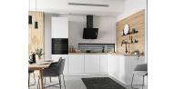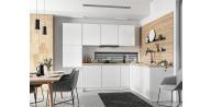 Kolekcja mebli kuchennych Livia w kolorze frontu biały groszek, korpus biały mat idealnie wpisze się w aranżację pomieszczeń w stylu tradycyjnym i nowoczesnym. Kolekcja dostępna jest w kolorach biały połysk, szary, dąb tajga.