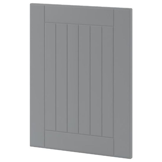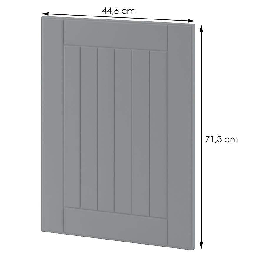 Wykończenie frontu jest matowe, co nadaje mu subtelnego, stonowanego charakteru. Konstrukcja frontu opiera się na foliowanej płycie MDF, co gwarantuje trwałość i odporność na uszkodzenia. Szary kolor świetnie dopasuje się do większości aranżacji.