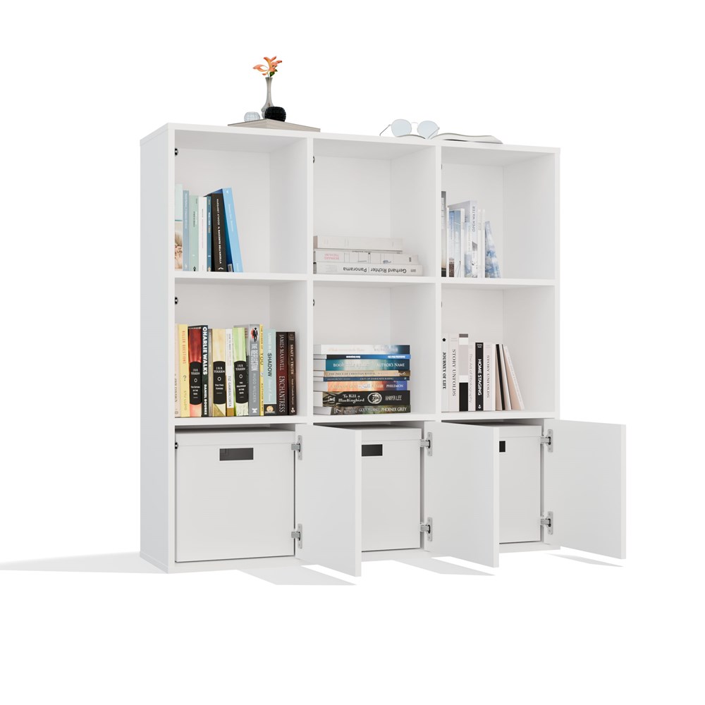 Fronty do regału Carl w kolorze białym to praktyczne i estetyczne uzupełnienie nowoczesnego wnętrza. Zestaw trzech frontów został zaprojektowany z myślą o regale Carl H, umożliwiając zabudowę dowolnie wybranych komór – górnych, środkowych lub dolnych. To doskonałe rozwiązanie dla osób ceniących funkcjonalność i porządek, które jednocześnie chcą zachować minimalistyczny, nowoczesny wygląd mebla.