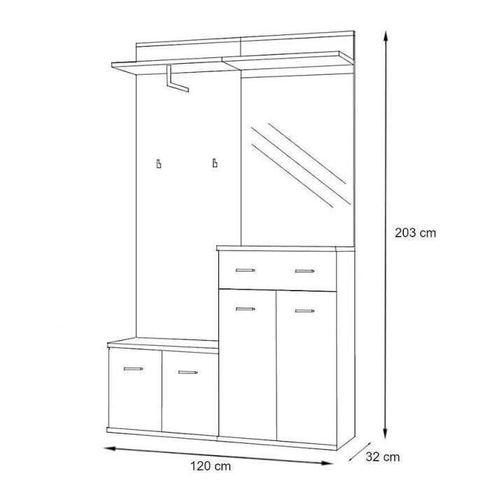 Lustro ścienne to nie tylko praktyczny element, ale także designerski akcent. Jego minimalistyczny design wkomponuje się doskonale w każdy przedpokój. Panel ścienny z wieszakami to rozwiązanie idealne dla osób, które chcą utrzymać porządek w swoim przedpokoju. Wieszaki pozwalają na wygodne przechowywanie ubrań, toreb i akcesoriów, a matowe wykończenie nadaje całemu panelowi elegancki wygląd. Szafka na buty to doskonałe rozwiązanie na przechowywanie obuwia. Dwudrzwiowa konstrukcja pozwala na segregację butów, a na górze znajduje się wygodna poduszka, która umożliwia wygodne zakładanie i zdejmowanie obuwia. Szafa dwudrzwiowa to miejsce, gdzie możesz przechowywać ubrania i akcesoria w elegancki sposób. Wyposażona w szufladę na dole, ułatwiającą organizację przestrzeni, doskonale wpisuje się zarówno w styl nowoczesny, jak i klasyczny. Szafka jednodrzwiowa z szufladą i półkami to rozwiązanie, które pozwala na przechowywanie różnych drobiazgów i akcesoriów, niezależnie od tego, czy potrzebujesz miejsca na klucze, rękawiczki czy inne przedmioty. Komoda dwudrzwiowa to mebel, który doda elegancji i funkcjonalności Twojemu wnętrzu. Dzięki dużej ilości miejsca wewnątrz i dodatkowej szufladzie, jest doskonałym miejscem na przechowywanie różnych rzeczy.