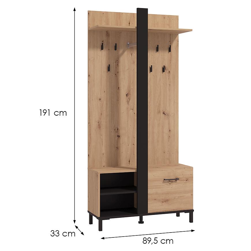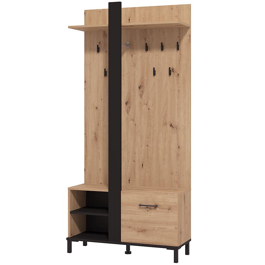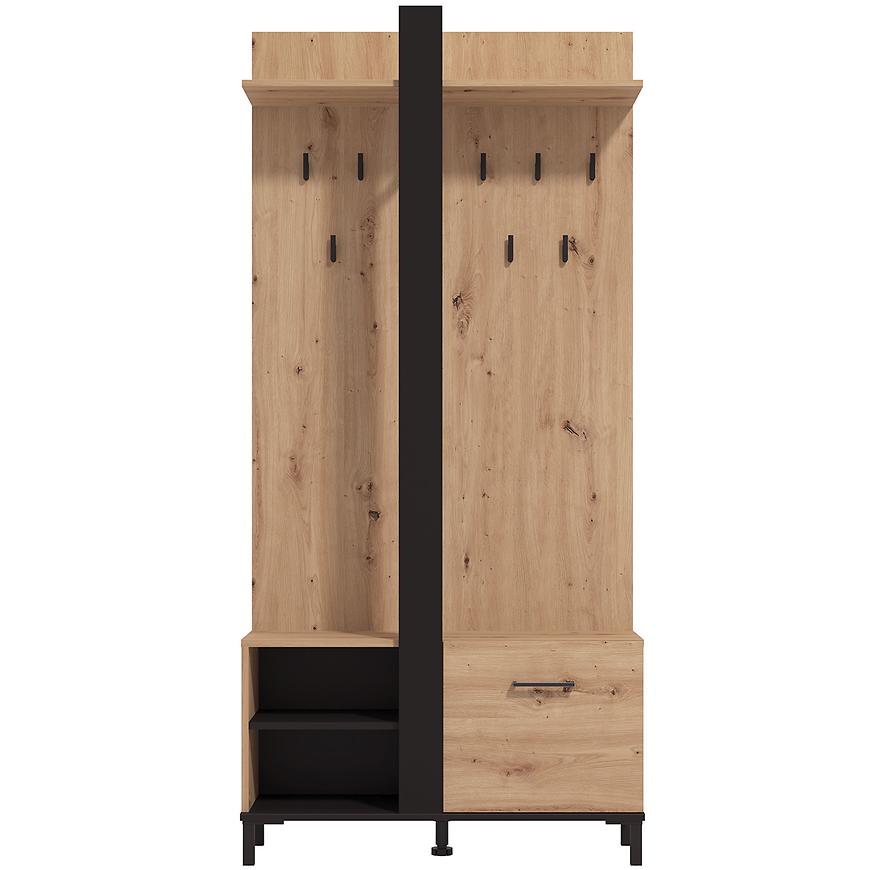 Garderoba Capitello Artisan 11011918 to nowoczesny mebel do przedpokoju, który łączy funkcjonalność z minimalistycznym designem. Wykonana z płyty wiórowej laminowanej w kolorze dąb artisan, charakteryzuje się matowym wykończeniem, co nadaje jej elegancki wygląd.
