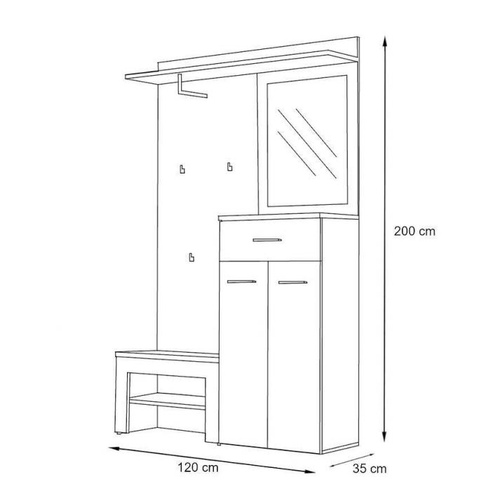 Szafka na buty z siedziskiem to funkcjonalne rozwiązanie, które pomaga utrzymać porządek w przestrzeni wejściowej, a jednocześnie stanowi wygodne miejsce do zdejmowania i zakładania obuwia. Panel z wieszakami ścienny wiszący to doskonały element do organizacji odzieży i akcesoriów, a także oszczędza przestrzeń w przedpokoju. Ozdobne lustro wiszące z półką to zarówno praktyczne, jak i dekoracyjne rozwiązanie.