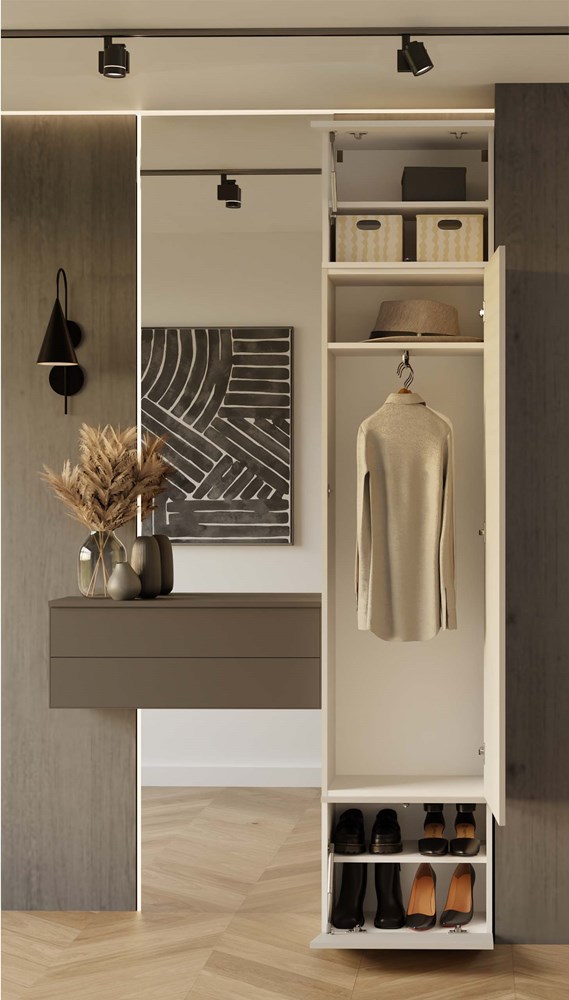 Garderoba Hamar to połączenie designu, komfortu i funkcjonalności – stworzony z myślą o nowoczesnych domach, w których liczy się każdy detal.