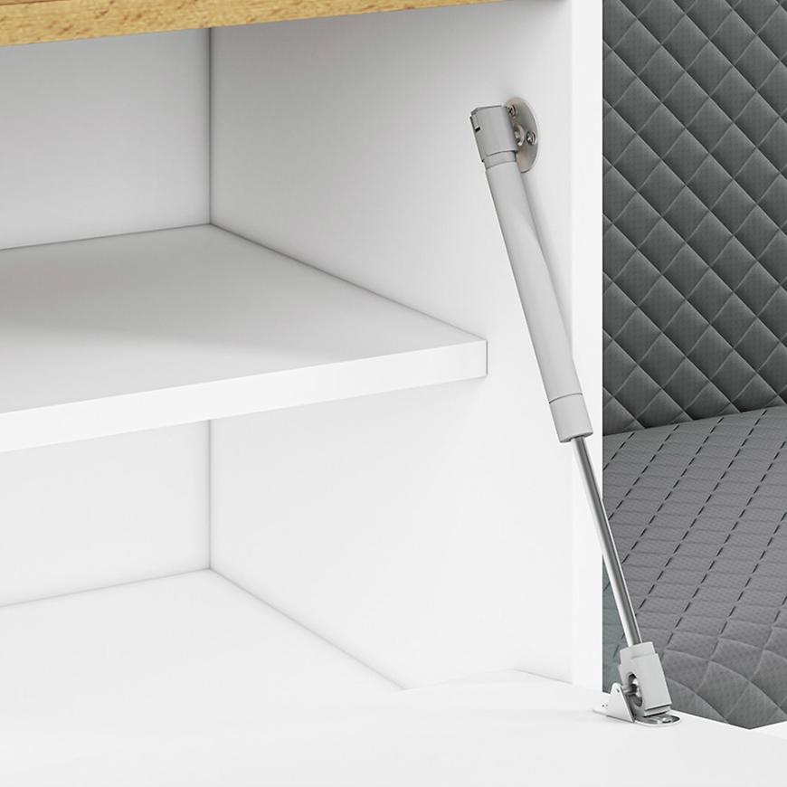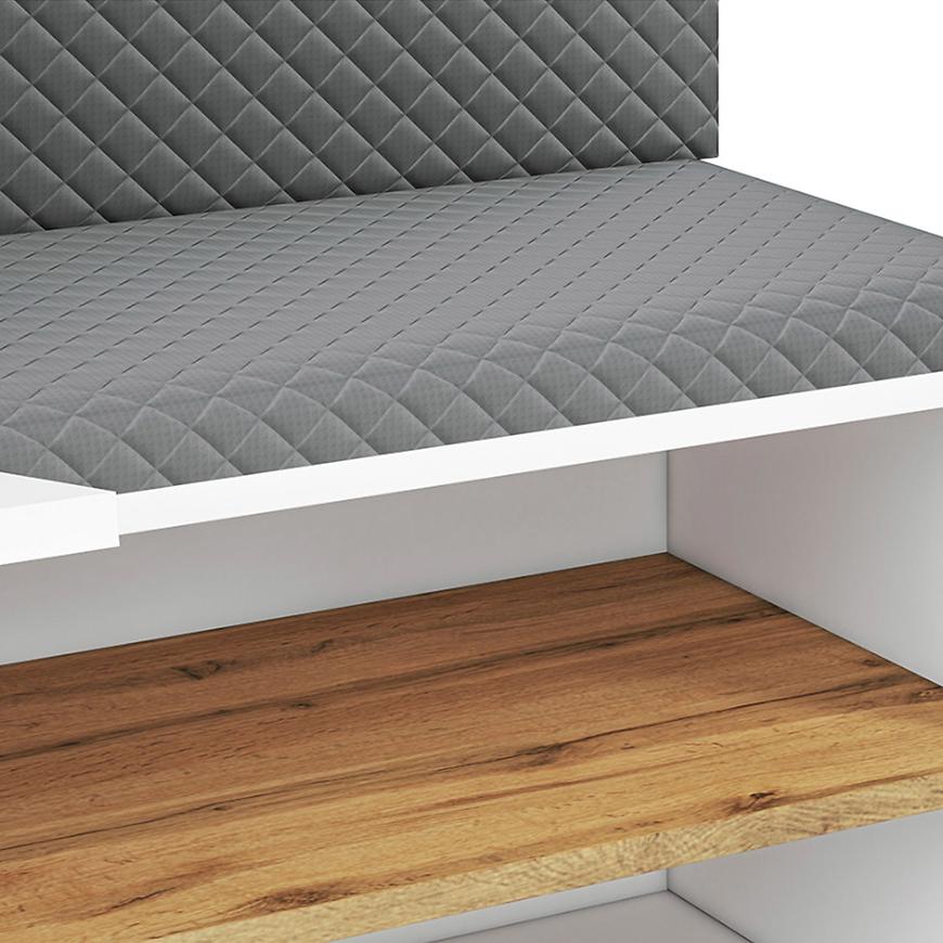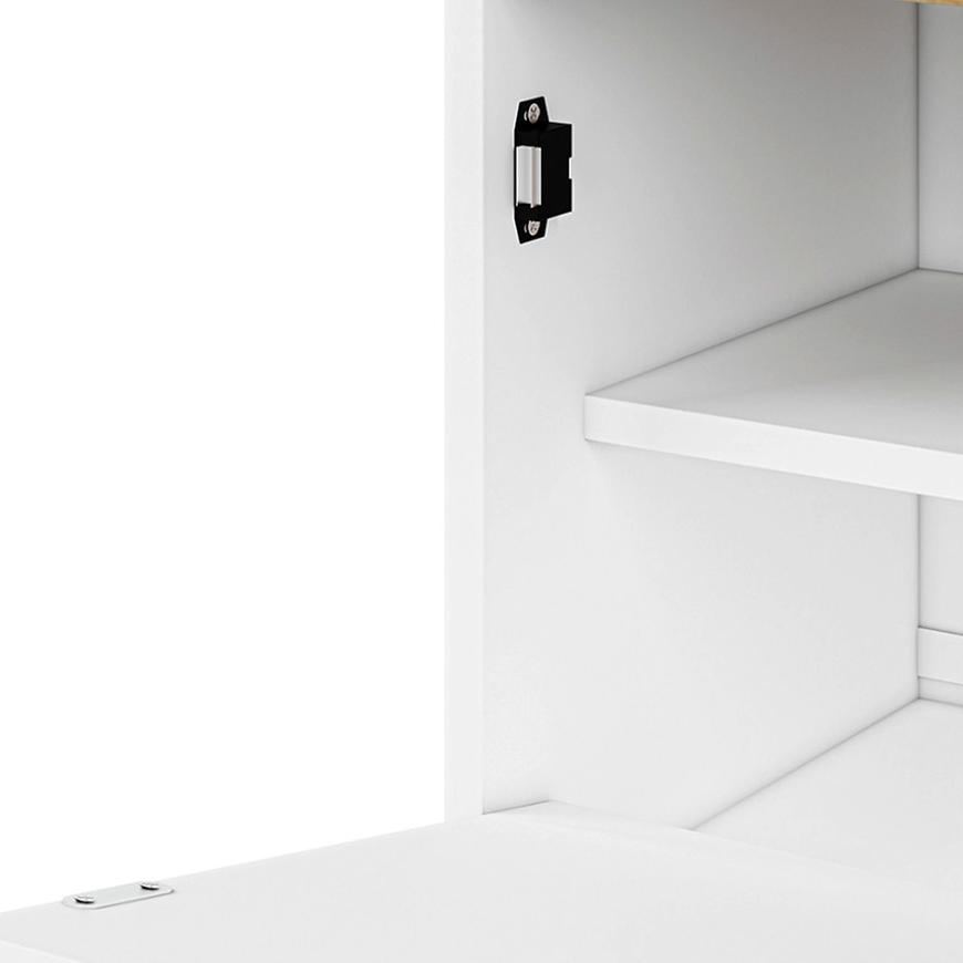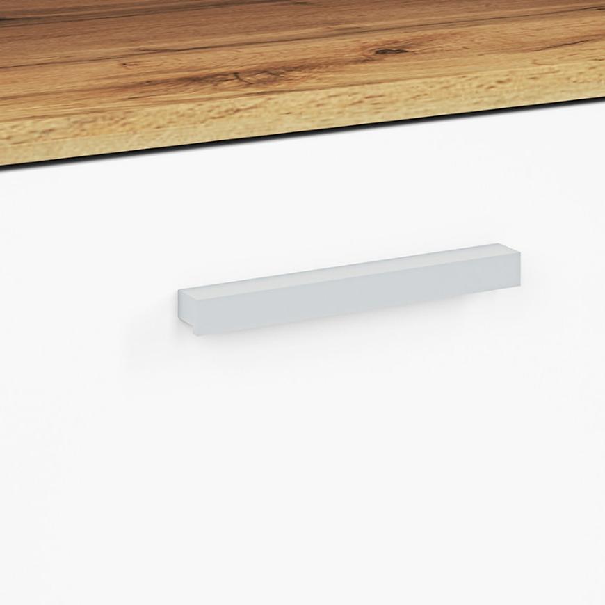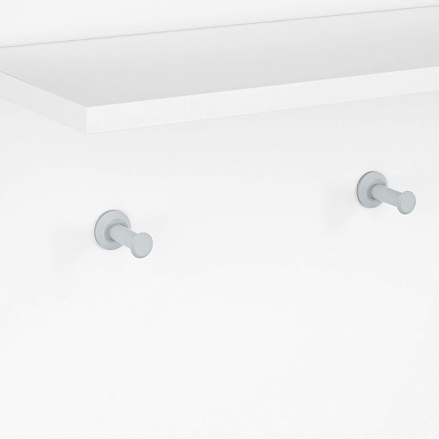 Białe wykończenie frontów i korpusu nadaje garderobie lekki i nowoczesny wygląd, doskonale komponując się z różnymi aranżacjami wnętrz. Płyta wiórowa laminowana użyta w konstrukcji frontów i korpusu zapewnia solidność i trwałość mebla.