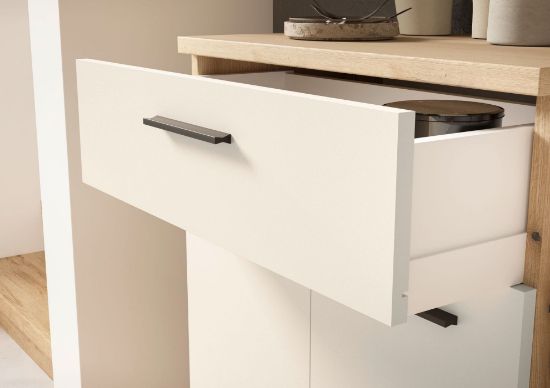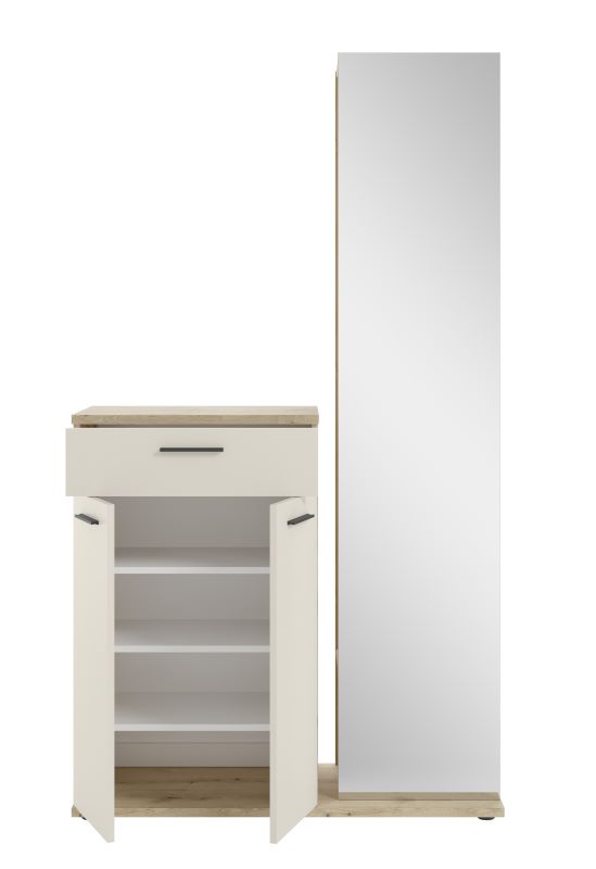 ✔ Komody na buty – dwudrzwiowa szafka z dodatkową szufladą pozwala na uporządkowane przechowywanie obuwia i drobiazgów.