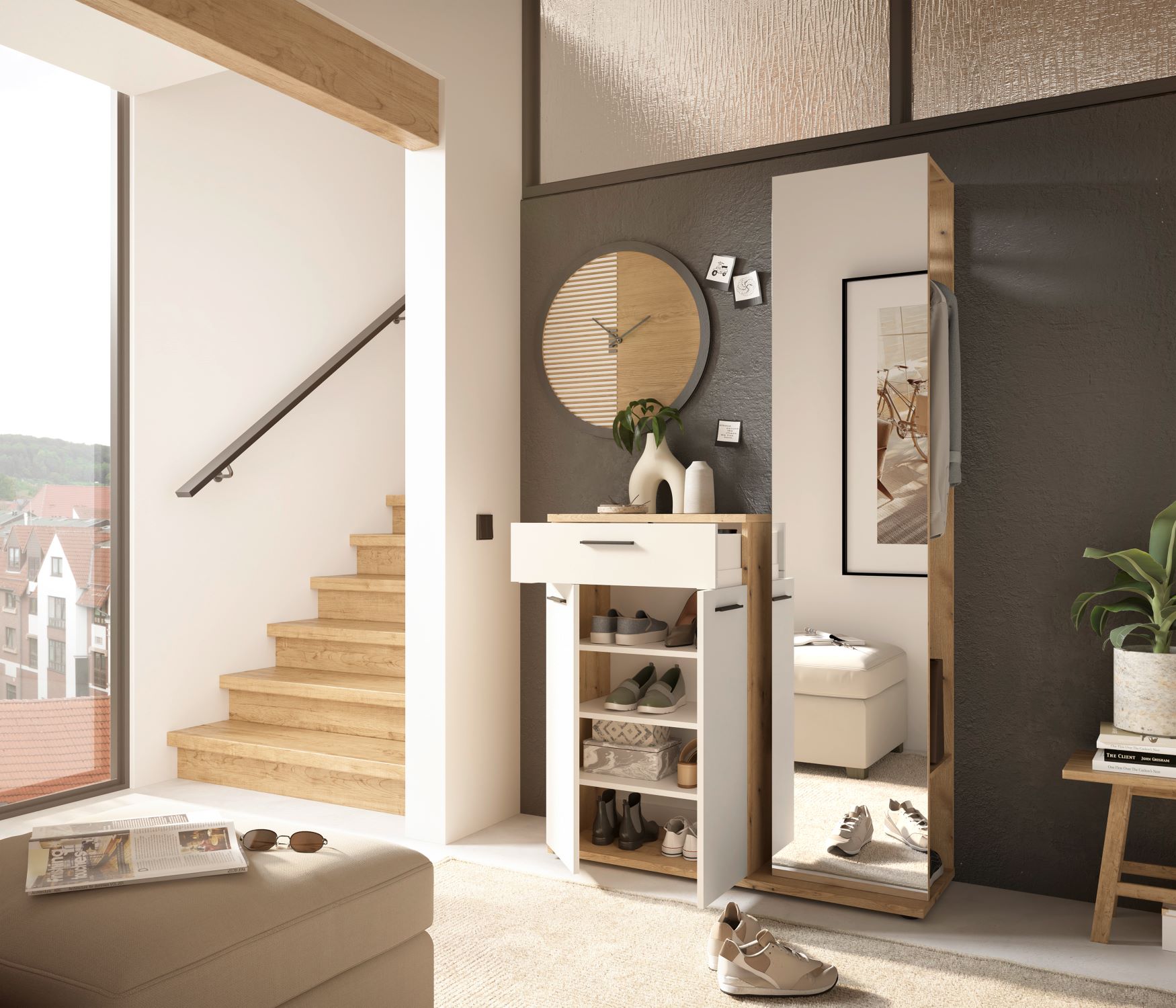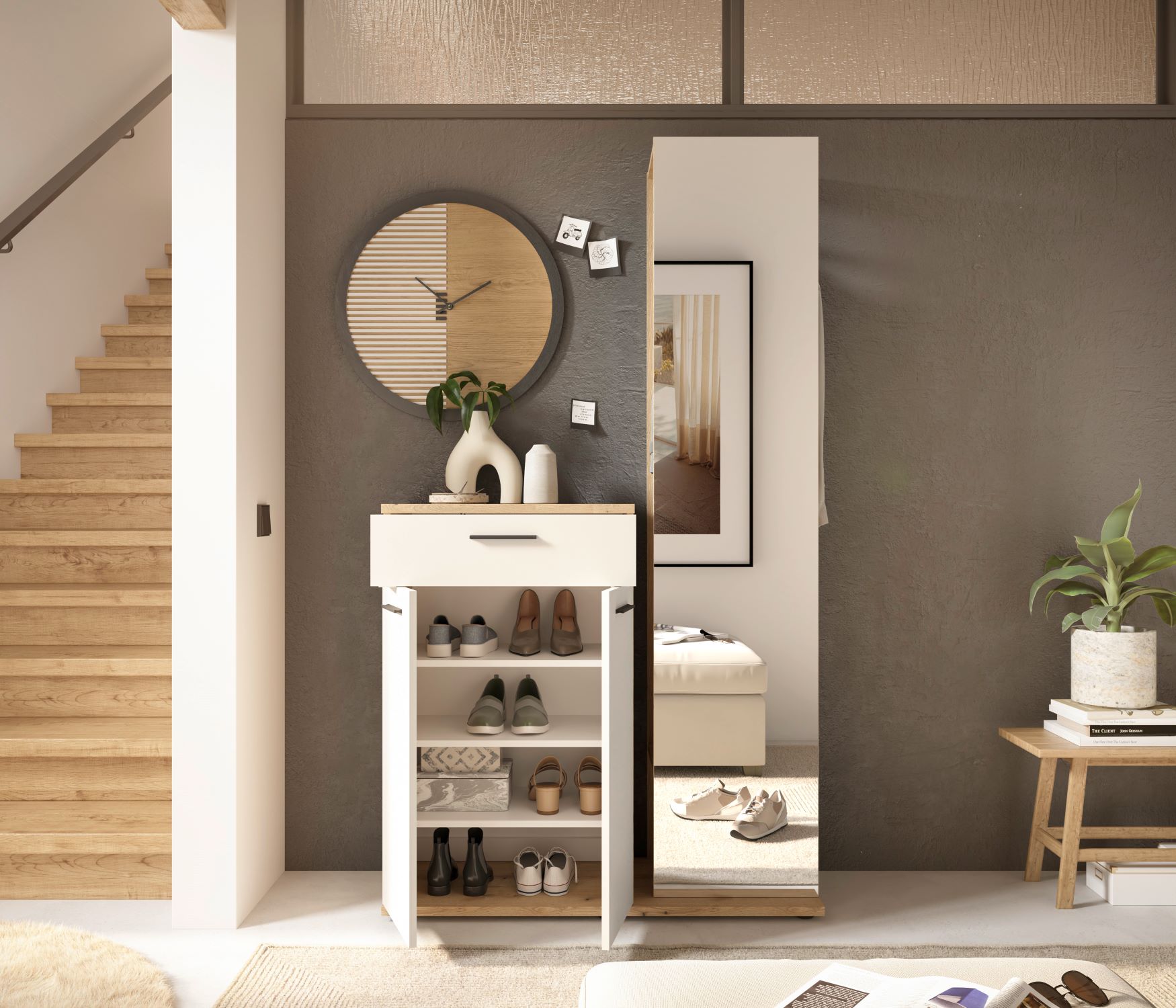 Dzięki eleganckiemu designowi i praktycznym rozwiązaniom, garderoba Malaga sprawdzi się w każdym nowoczesnym wnętrzu. Funkcjonalne rozmieszczenie elementów pozwala na wygodne przechowywanie butów, ubrań i akcesoriów, a wysokiej jakości materiały zapewniają trwałość i estetyczny wygląd na długie lata.