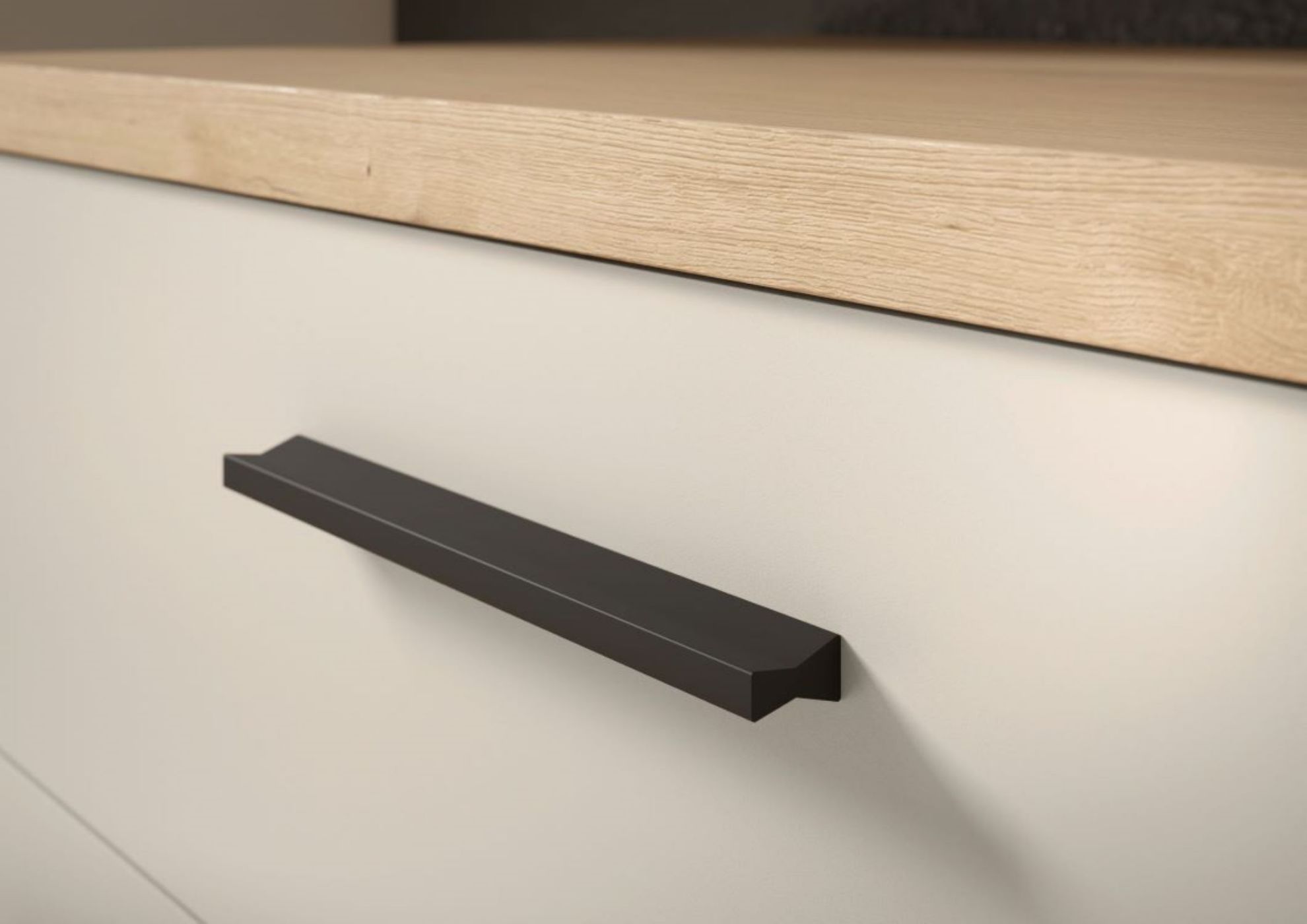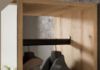 - Stylowe detale – czarne, plastikowe uchwyty nadają garderobie nowoczesny charakter i ułatwiają otwieranie frontów.