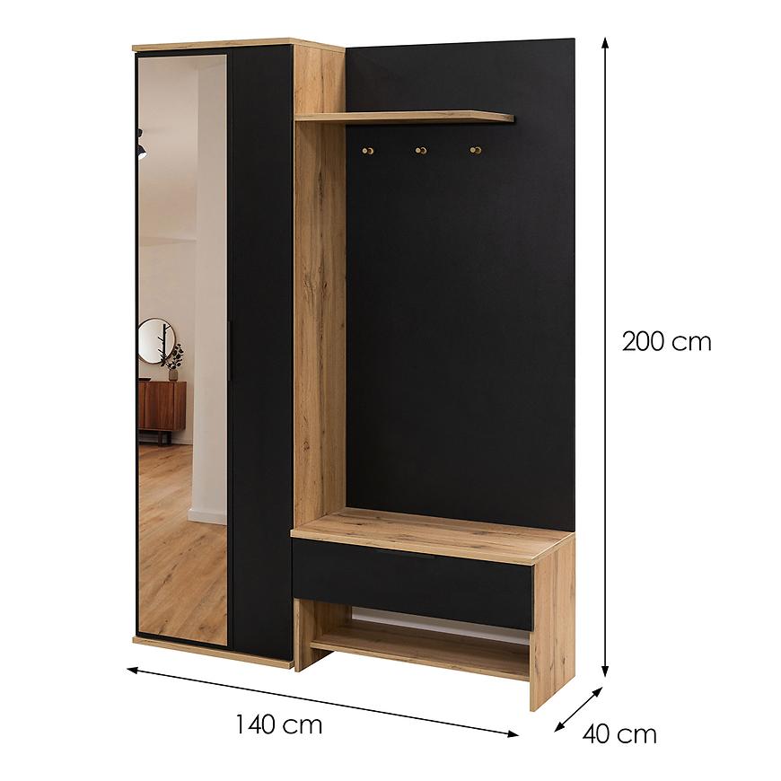 Garderoba Milo 140 dąb wotan/czarny/lustro
