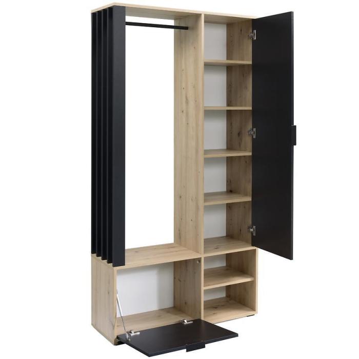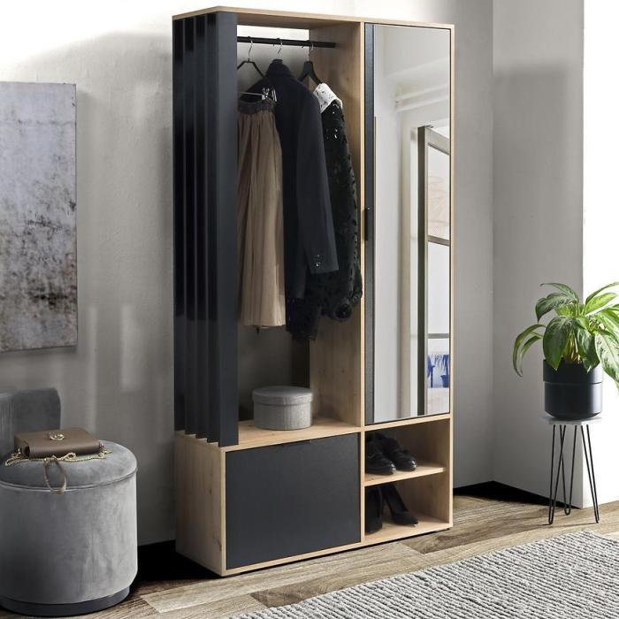 Garderoba Milo została wykonana z płyty wiórowej laminowanej. Dzięki swojej kolorystyce wpasuje się w większość aranżacji i nada im oryginalnego charakteru.