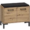 Kolekcja mebli do przedpokoju Nevio to doskonałe połączenie funkcjonalności, nowoczesnego designu i wysokiej jakości materiałów. Wszystkie elementy kolekcji są wykonane z trwałej płyty wiórowej laminowanej, co gwarantuje długotrwałe użytkowanie. Charakterystycznym elementem designu jest dekor dąb artisan, który nadaje meblom naturalnego i eleganckiego wyglądu. Dodatkowo, elementy w kolorze czarnym nadają kolekcji wyjątkowego kontrastu i nowoczesnego charakteru.