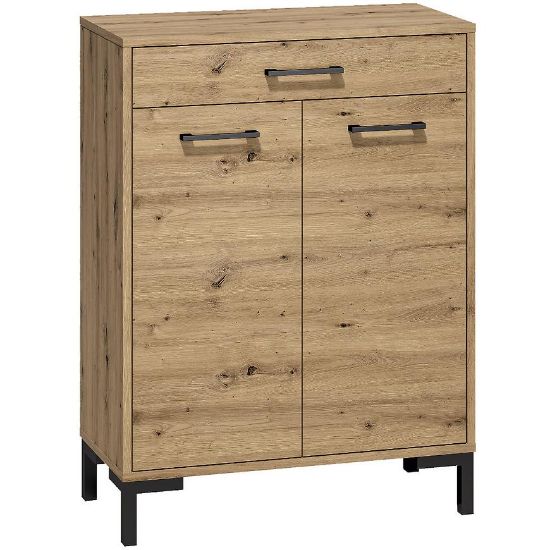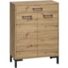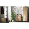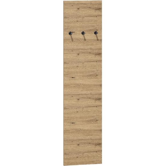 Jasne drewnopodobne wybarwienie, zarówno korpusu, jak i frontów w kolorze dąb artisan, nadaje meblowi naturalnego i ciepłego charakteru. Konstrukcja oparta na płycie wiórowej laminowanej gwarantuje trwałość i solidność, co sprawia, że garderoba jest gotowa sprostać codziennym wymaganiom.