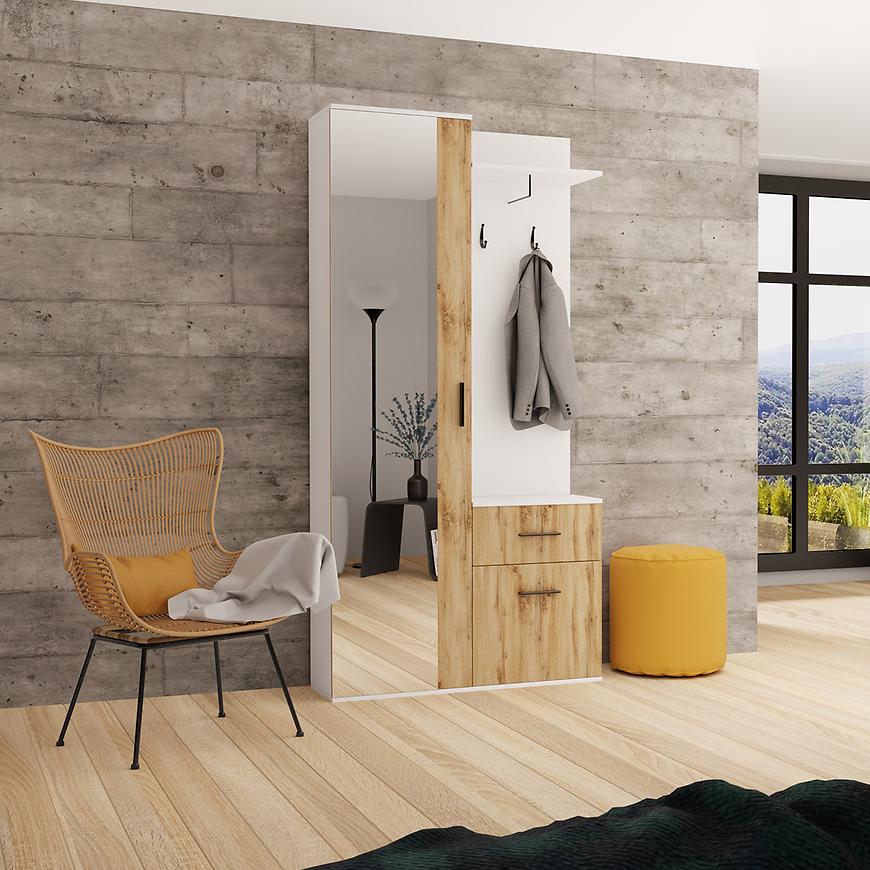 Garderoba Rio w kolorze wotan/biały to nowoczesny mebel, który łączy funkcjonalność z eleganckim designem, idealnie wpasowując się w styl współczesnych wnętrz. Z kolekcji Rio, garderoba charakteryzuje się prostą, lecz wyrafinowaną formą, która sprawdzi się zarówno w przedpokoju, jak i sypialni czy garderobie.
