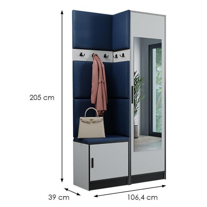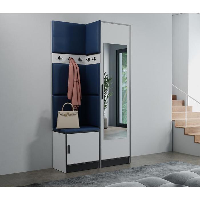 W skład zestawu wchodzi panel z wieszakami,szafką na dole i szafą. Dzięki, którym zyskamy łatwo dostępną przestrzeń do przechowywania rzeczy,ubrań i butów.