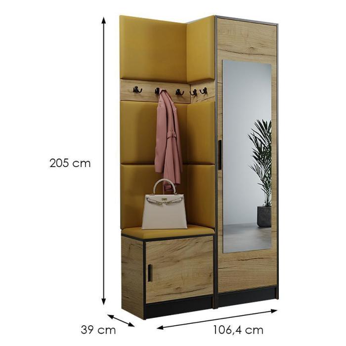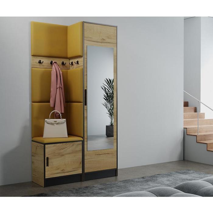 W skład zestawu wchodzi panel z wieszakami,szafką na dole i szafą. Dzięki, którym zyskamy łatwo dostępną przestrzeń do przechowywania rzeczy,ubrań i butów.