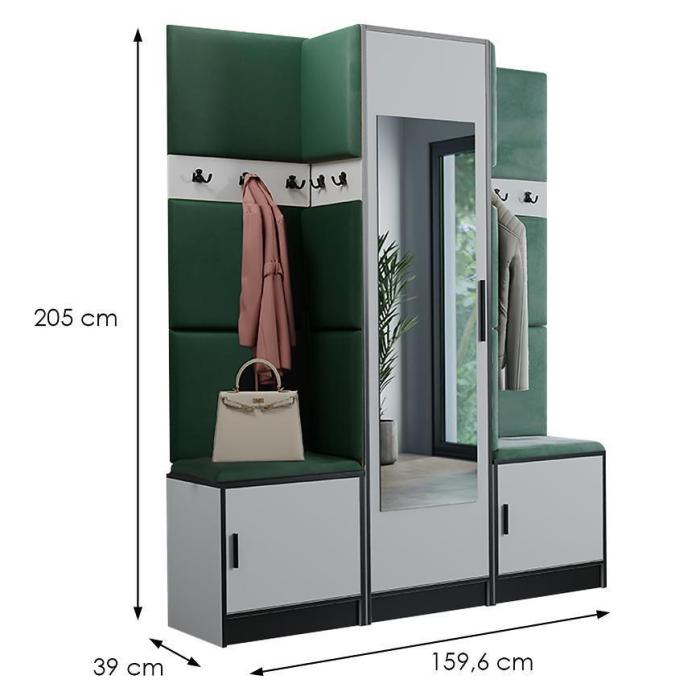 W skład zestawu wchodzą panele z wieszakami i szafką na dole i szafa. Dzięki, którym zyskamy łatwo dostępną przestrzeń do przechowywania rzeczy,ubrań i butów.