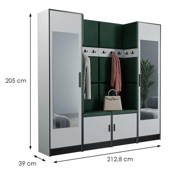 W skład zestawu wchodzą panele z wieszakami,szafkami na dole i szafami. Dzięki, którym zyskamy łatwo dostępną przestrzeń do przechowywania rzeczy,ubrań i butów.
