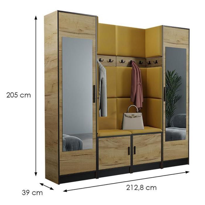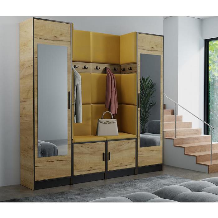 W skład zestawu wchodzą panele z wieszakami,szafkami na dole i szafami. Dzięki, którym zyskamy łatwo dostępną przestrzeń do przechowywania rzeczy,ubrań i butów.