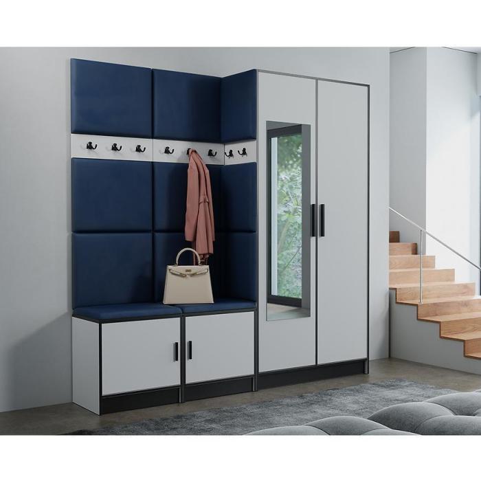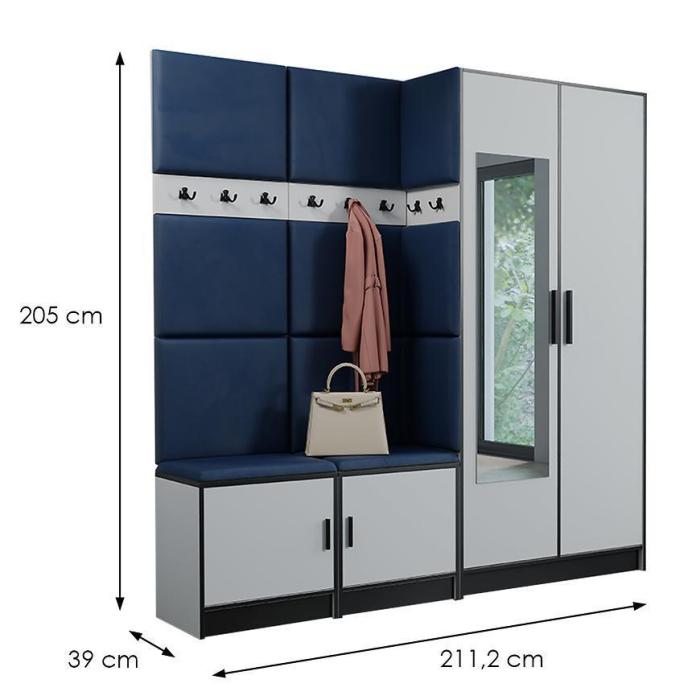 W skład zestawu wchodzą panele z wieszakami i szafką na dole i szafa. Dzięki, którym zyskamy łatwo dostępną przestrzeń do przechowywania rzeczy,ubrań i butów.