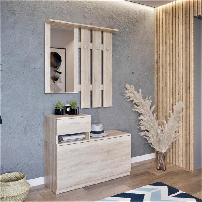 Kolekcja mebli do przedpokoju Vegas to doskonały przykład harmonii między funkcjonalnością, a nowoczesnym designem. Każdy element tej kolekcji został starannie wykonany z wysokiej jakości płyty wiórowej laminowanej, co gwarantuje trwałość i estetyczny wygląd na długie lata. Dąb Sonoma to dekor, który nadaje kolekcji Vegas naturalnego charakter, tworząc przytulne otoczenie.