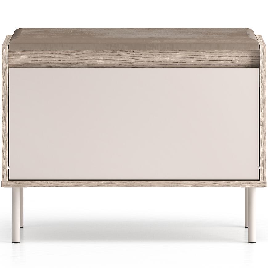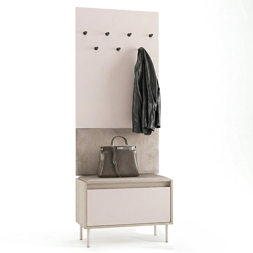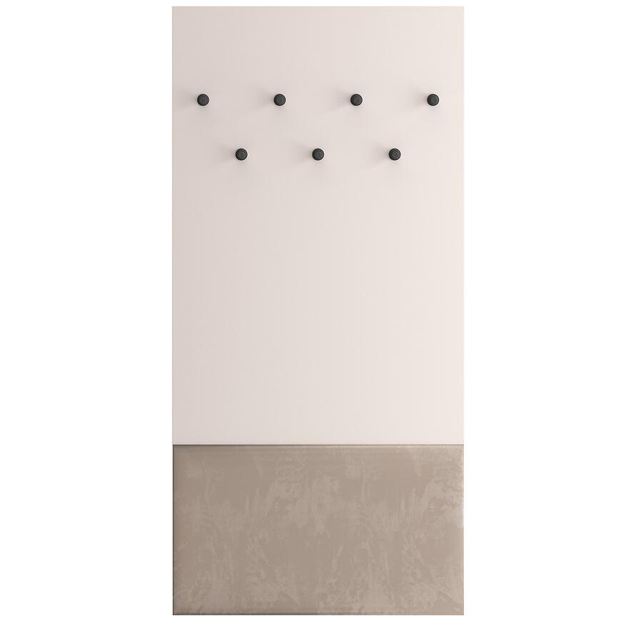 Dzięki klasycznemu designowi garderoba Voco III stanowi harmonijny element wyposażenia wnętrza, który łączy estetykę z wygodą użytkowania. Neutralny odcień kaszmir frontów sprawia, że mebel komponuje się z różnymi kolorami ścian i podłóg, a jasny dąb cremona optycznie rozjaśnia przestrzeń. Brak oświetlenia nie ogranicza praktyczności, a minimalistyczny, elegancki wygląd pozwala na dopasowanie garderoby do innych elementów meblowych z kolekcji VOCO.