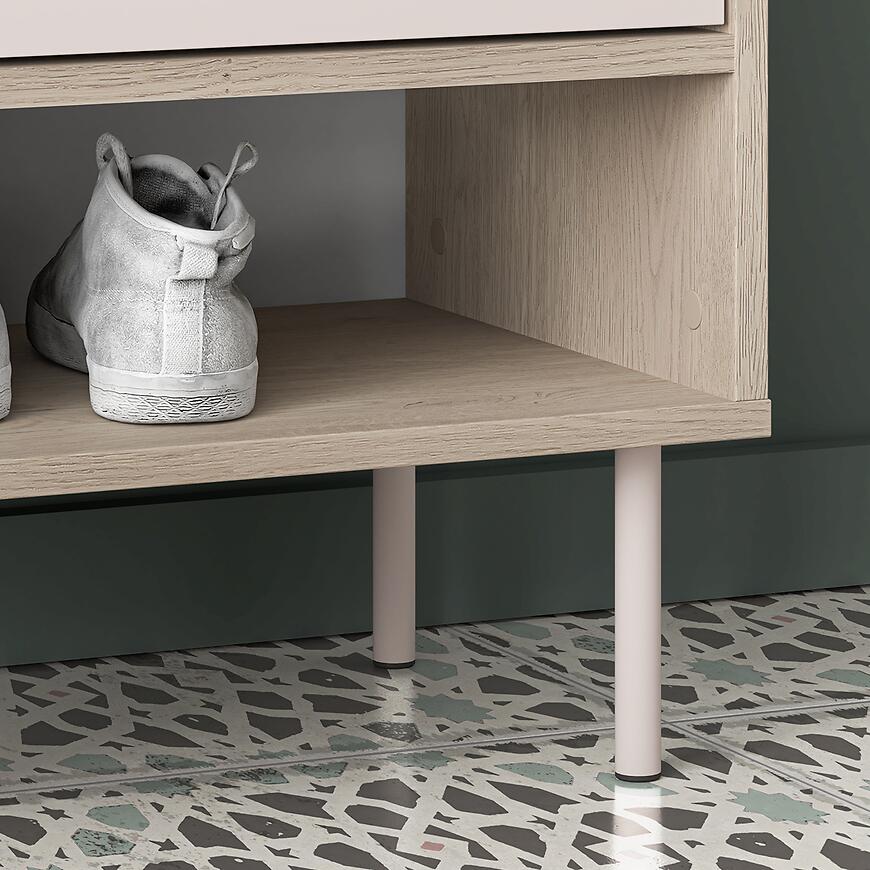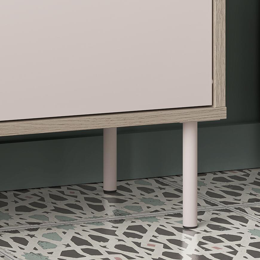 Garderoba Voco V Kaszmir/Dąb Cremona została wykonana z wysokiej jakości płyty wiórowej laminowanej zarówno w korpusie, jak i na frontach, co zapewnia trwałość oraz odporność na uszkodzenia. Fronty i korpus w wykończeniu matowym podkreślają subtelny charakter mebla, a stojąca konstrukcja umożliwia łatwe ustawienie garderoby w dowolnym miejscu. Produkt waży 80,5 kg, a jego składanie jest intuicyjne, co ułatwia montaż i przestawianie w pomieszczeniu.