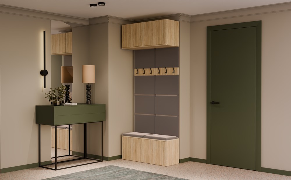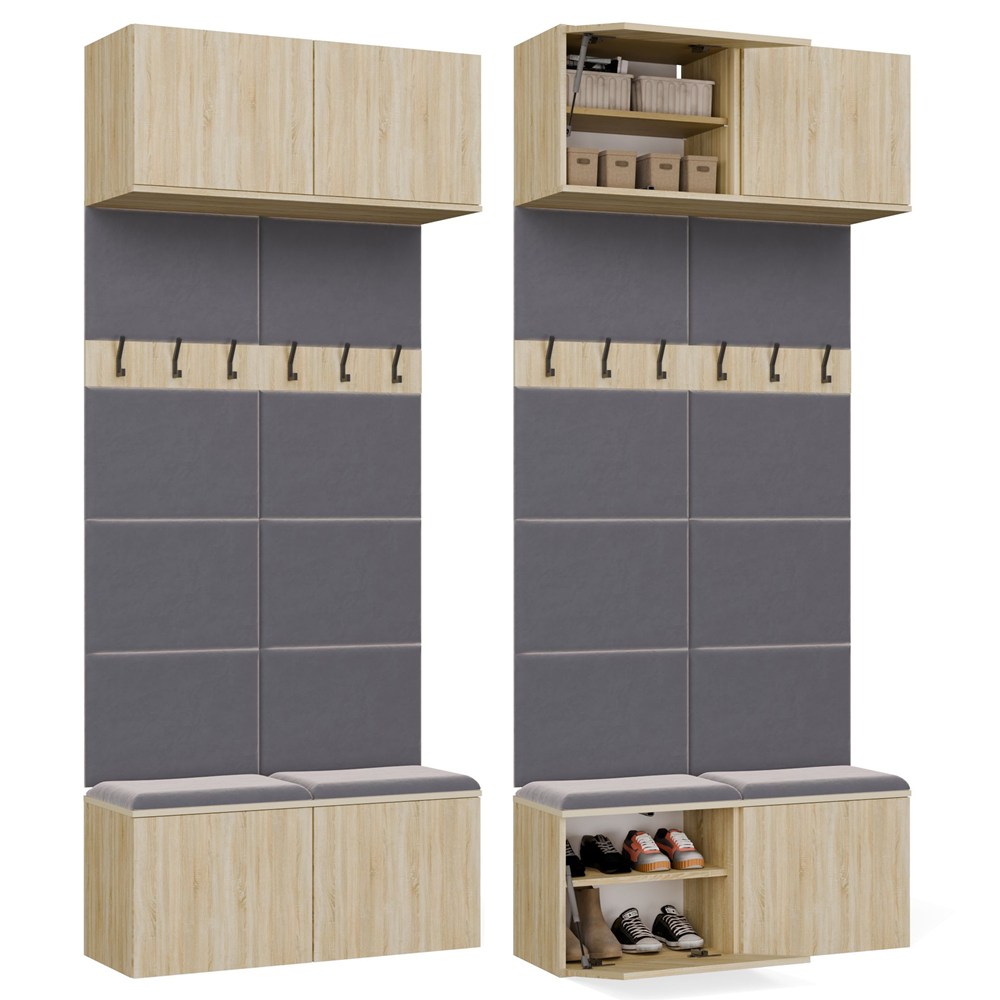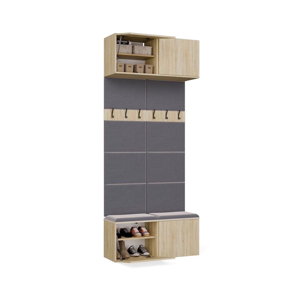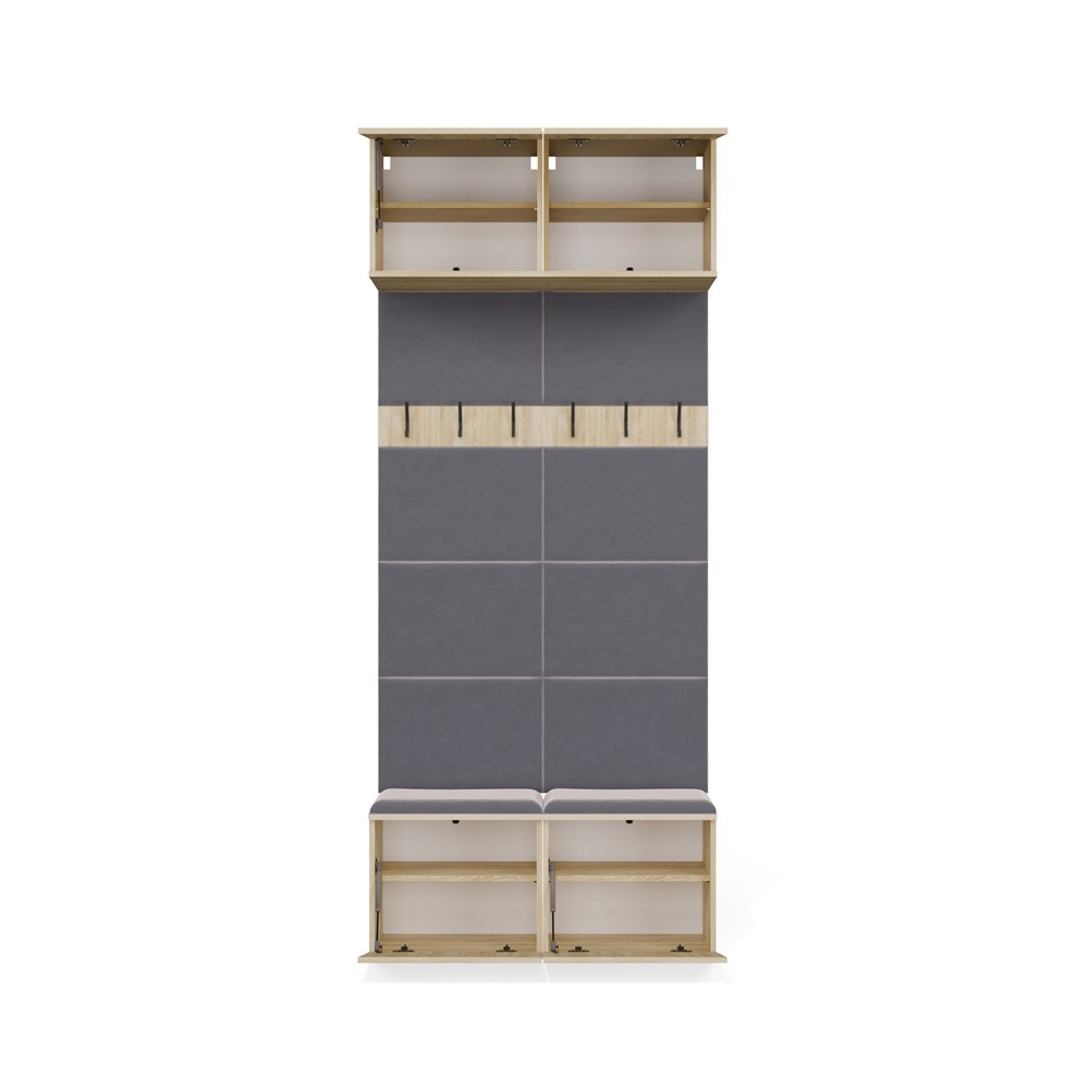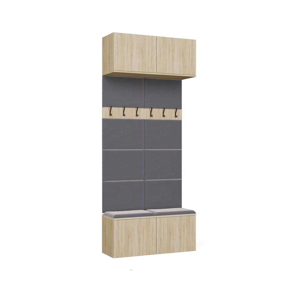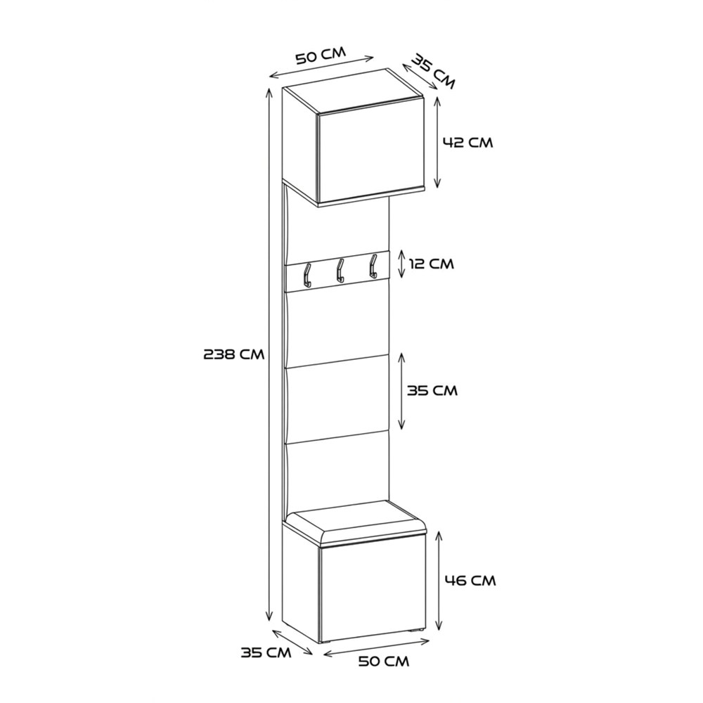 Garderoba z podwójnym wieszakiem Hamar to nowoczesne i praktyczne rozwiązanie do przedpokoju, które łączy kompaktowy rozmiar z maksymalną użytecznością. Została zaprojektowana z myślą o użytkownikach ceniących porządek, wygodę oraz minimalistyczny styl. W skład zestawu wchodzi wygodne siedzisko z miejscem do przechowywania, otwarty panel z wieszakami oraz pojemna szafka górna.