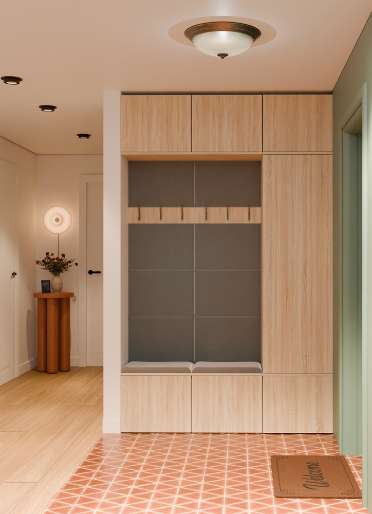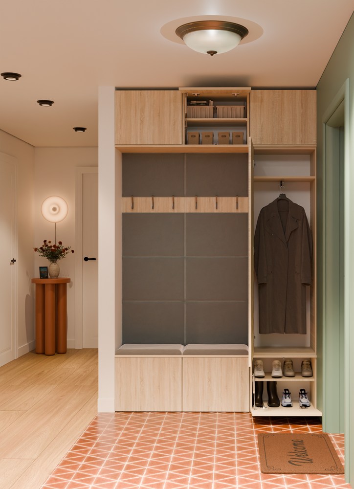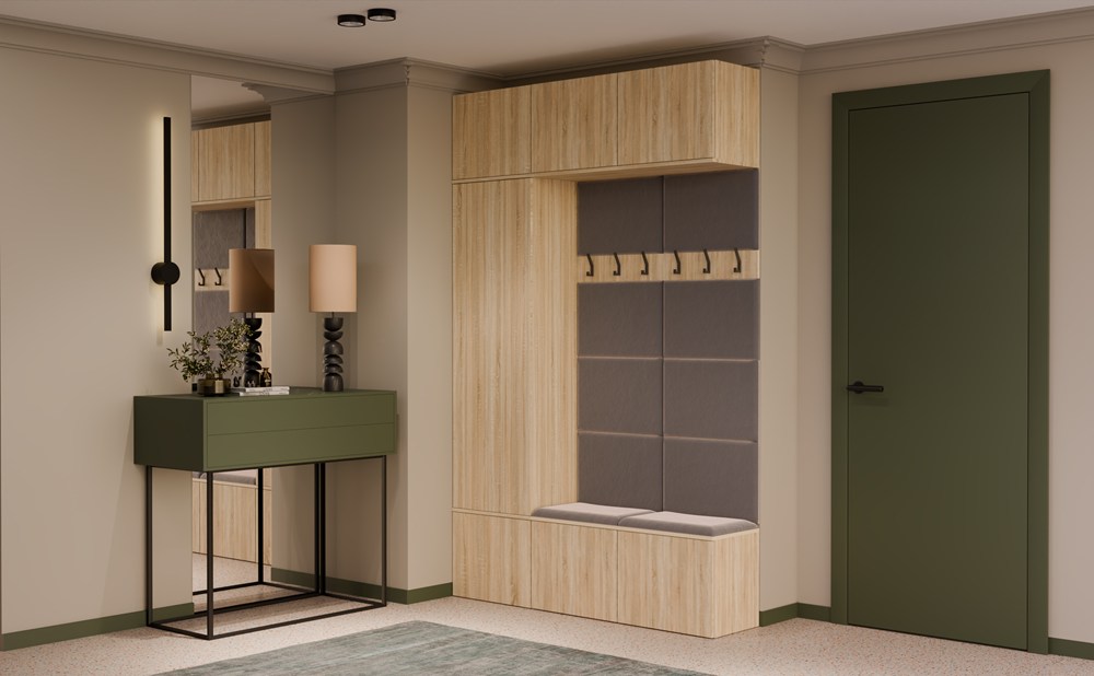 - Tapicerowane siedzisko z zamykaną dolną szafką na buty