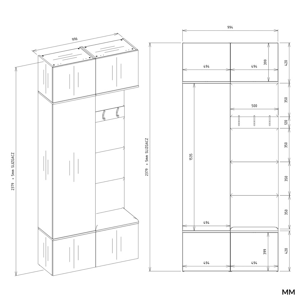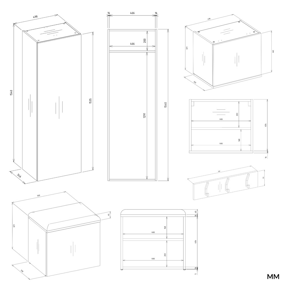 Garderoba z szafą i wieszakiem Hamar II to idealne rozwiązanie do nowoczesnych przedpokojów, łączące w sobie funkcjonalność, estetykę i wygodę użytkowania. Ten zestaw składa się z dwóch niezależnych, doskonale uzupełniających się modułów: pełnowymiarowej szafy 1SZ oraz praktycznego wieszaka z siedziskiem i szafkami.