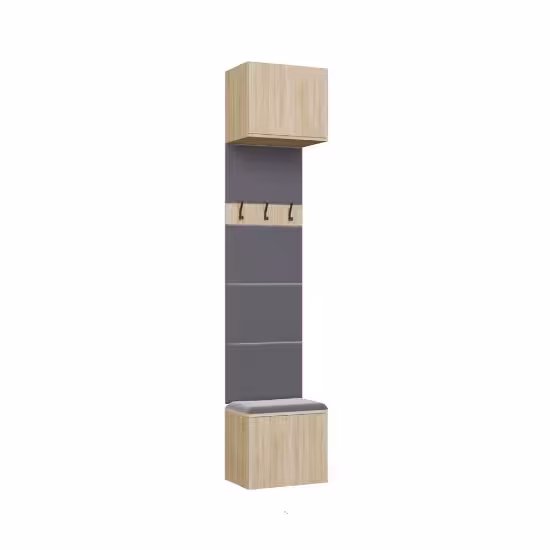 Garderoba Hamar to nowoczesne i praktyczne rozwiązanie do przedpokoju, które łączy kompaktowy rozmiar z maksymalną użytecznością. Została zaprojektowana z myślą o użytkownikach ceniących porządek, wygodę oraz minimalistyczny styl. W skład zestawu wchodzi wygodne siedzisko z miejscem do przechowywania, otwarty panel z wieszakami oraz pojemna szafka górna.