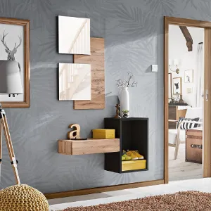 Garderoba Milo 140 dąb wotan/czarny/lustro