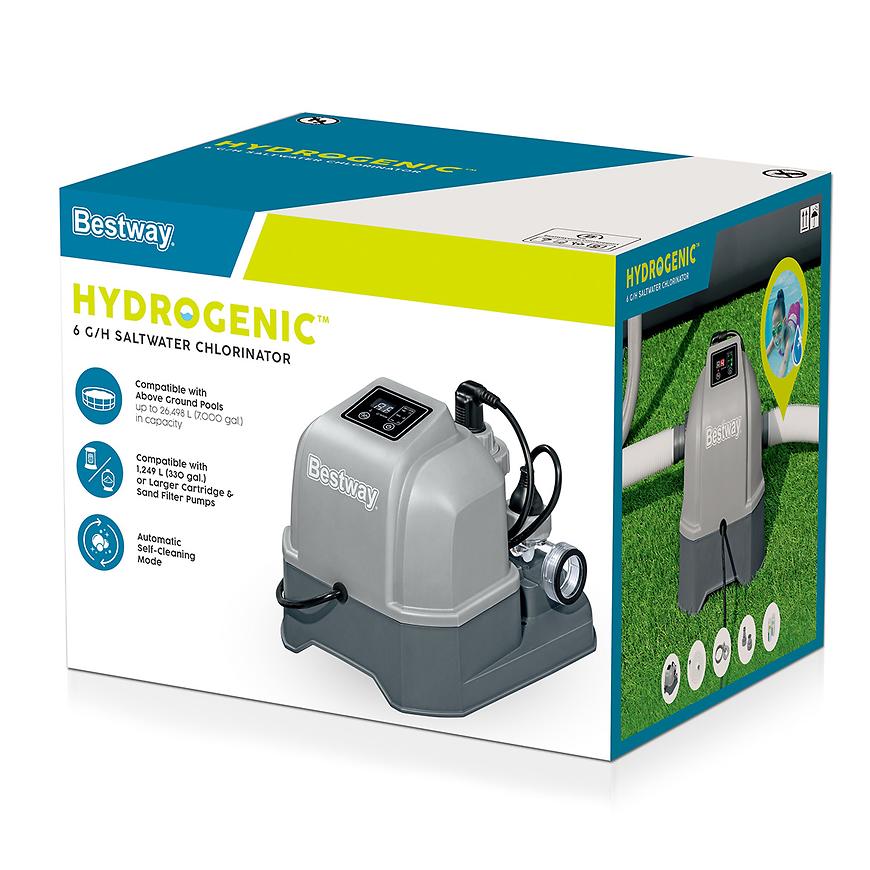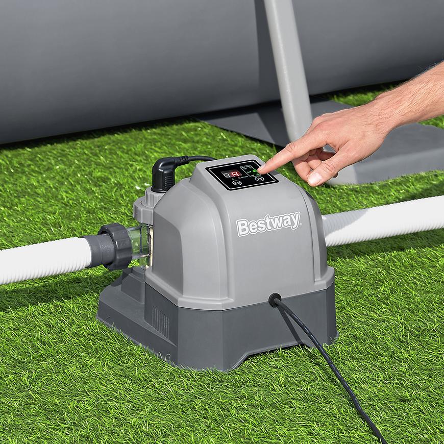 Odkryj rewolucyjny sposób utrzymania krystalicznie czystego basenu bez konieczności bezpośredniego dodawania chloru dzięki Generatorowi Chloru do Basenu Bestway® Hydrogenic™ o wydajności 6g/h. Innowacyjna technologia tego urządzenia przekształca sól w niewielką ilość chloru, który skutecznie eliminuje bakterie, jednocześnie pozostając delikatnym dla skóry, oczu, włosów i kostiumów kąpielowych.