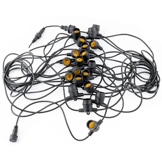 Girlanda została wykonana z tworzywa sztucznego, co zapewnia lekkość, odporność na uszkodzenia mechaniczne oraz długą żywotność. Gwinty E27 umożliwiają łatwą wymianę żarówek oraz stosowanie różnych typów źródeł światła, co zwiększa uniwersalność produktu i pozwala dostosować oświetlenie do własnych potrzeb.