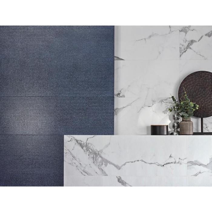 Rektyfikacja płytek Bilma Azul umożliwia układanie ich z minimalną fugą, co pozwala uzyskać efekt spójnej, dokładnie dopasowanej powierzchni. To szczególnie cenione w nowoczesnych aranżacjach, w których liczy się wyrazistość i równowaga kompozycji. Gładkie, polerowane wykończenie dodatkowo podkreśla dekoracyjny charakter tej płytki.