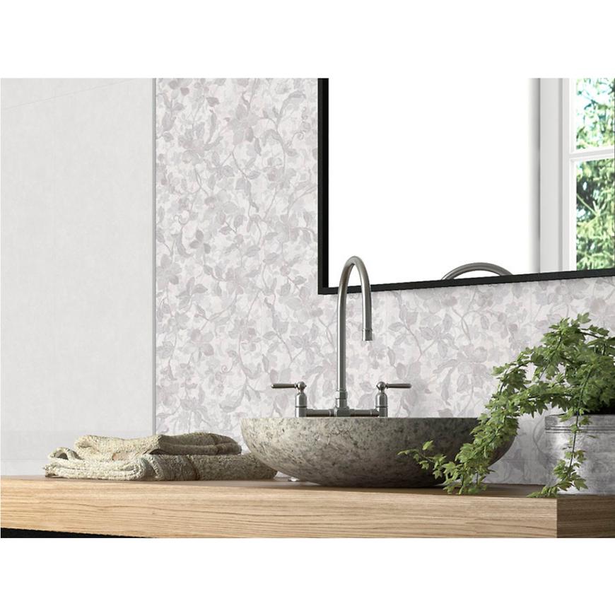 Wymiary 30×90 cm pozwalają na stworzenie jednolitej, harmonijnej powierzchni, a duży format optycznie powiększa przestrzeń. Subtelny roślinny motyw wprowadza dekoracyjny akcent, nie przytłaczając wnętrza.