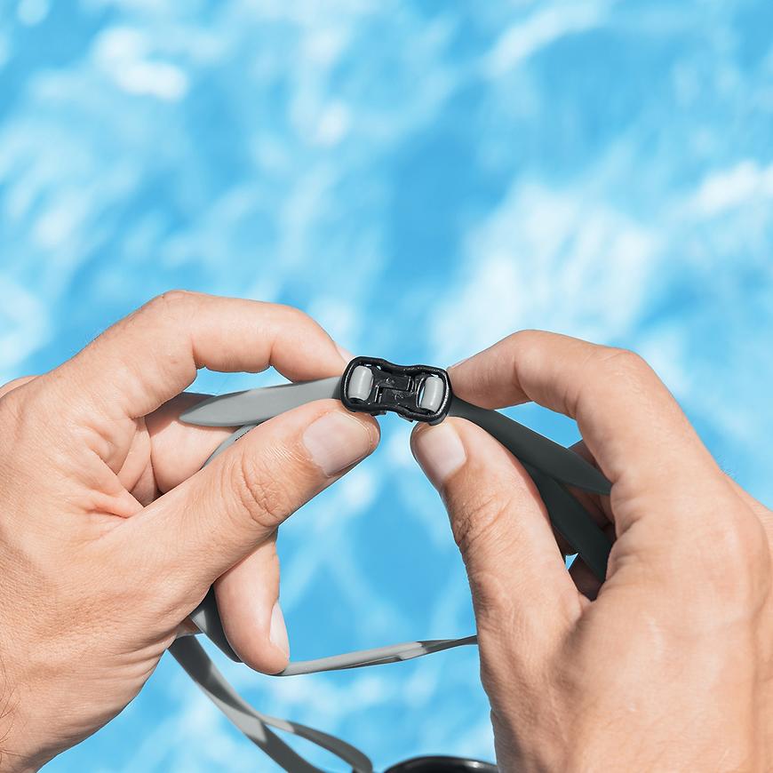 Komfortowe dopasowanie to kolejny atut gogli Accelera™. Miękkie, bez lateksu i PVC muszle oczne oraz regulowany mostek na nos gwarantują wygodę noszenia przez długie godziny ćwiczeń. Silikonowy, dzielony pasek na głowę z szybką regulacją pozwala na indywidualne dopasowanie, zapewniając miękki, a jednocześnie bezpieczny komfort podczas każdego pływania.