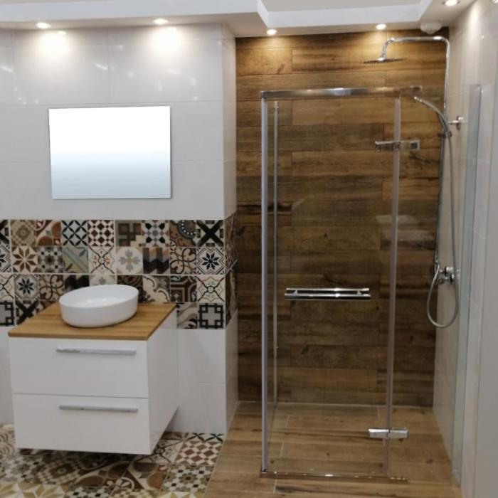 Wymiary 90 cm długości i 15 cm szerokości pozwalają na układanie płytek w popularne wzory drewniane, takie jak klasyczna cegiełka czy jodełka. Płytka o grubości 0,9 cm zapewnia solidność i trwałość użytkowania, jednocześnie umożliwiając łatwy montaż w różnych przestrzeniach. Brak rektyfikacji pozwala uzyskać delikatne przejścia między poszczególnymi elementami, podkreślając naturalny charakter drewna.