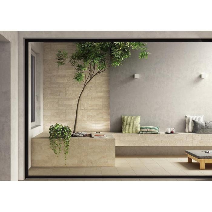 Wzór imitujący kamień wprowadza do wnętrza elegancję i ponadczasowy charakter. Beżowy kolor jest neutralny i harmonijny, co umożliwia łatwe dopasowanie gresu do różnorodnych materiałów i stylów aranżacji, od klasycznych po nowoczesne.