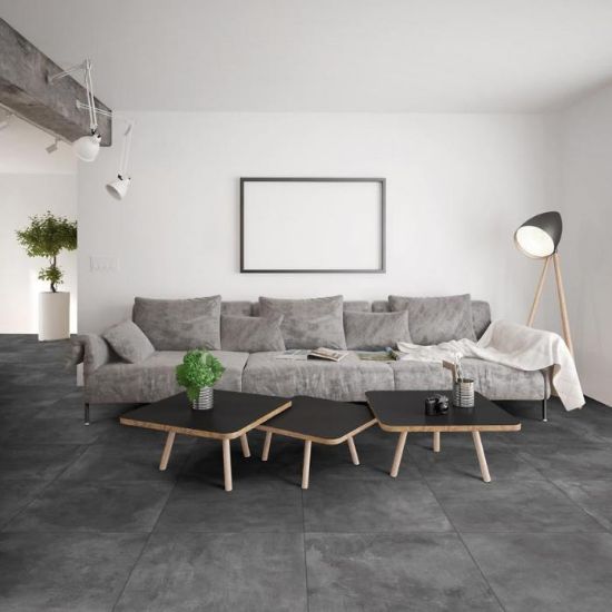 Grafitowa płytka imituje naturalny beton, nadając wnętrzom charakter loftowy i minimalistyczny. Matowa powierzchnia z subtelnymi niuansami kolorystycznymi dodaje głębi i dynamiki, wprowadzając elegancki, ale niepretensjonalny efekt wizualny.