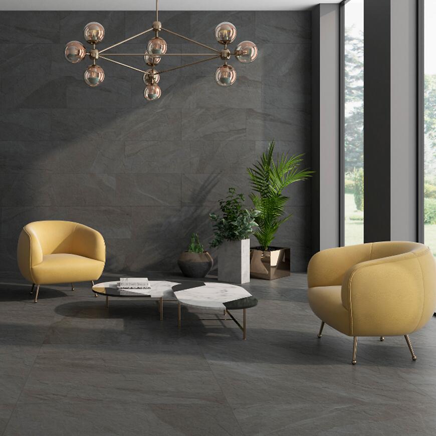 Gres Halley Argent 100x100 to płytka bazowa o nowoczesnym, grafitowym kolorze i matowej powierzchni, która wiernie odwzorowuje strukturę naturalnej skały. Dzięki rektyfikacji pozwala na układanie z minimalnymi fugami, co nadaje powierzchni elegancki, spójny wygląd.