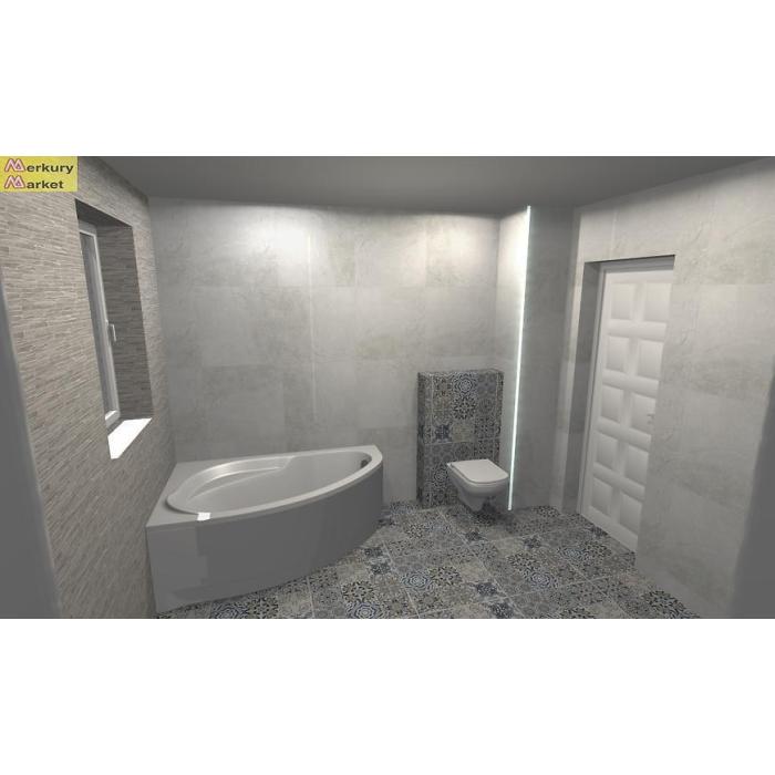 Szary odcień płytki naśladuje naturalny beton, nadając przestrzeni nowoczesny i surowy charakter. Polerowana powierzchnia subtelnie odbija światło, podkreślając geometryczne ułożenie płytek i dodając elegancji. Naturalny, jednolity kolor pozwala na łatwe dopasowanie dodatków i mebli, a także tworzenie kontrastów z elementami drewnianymi czy metalowymi.
