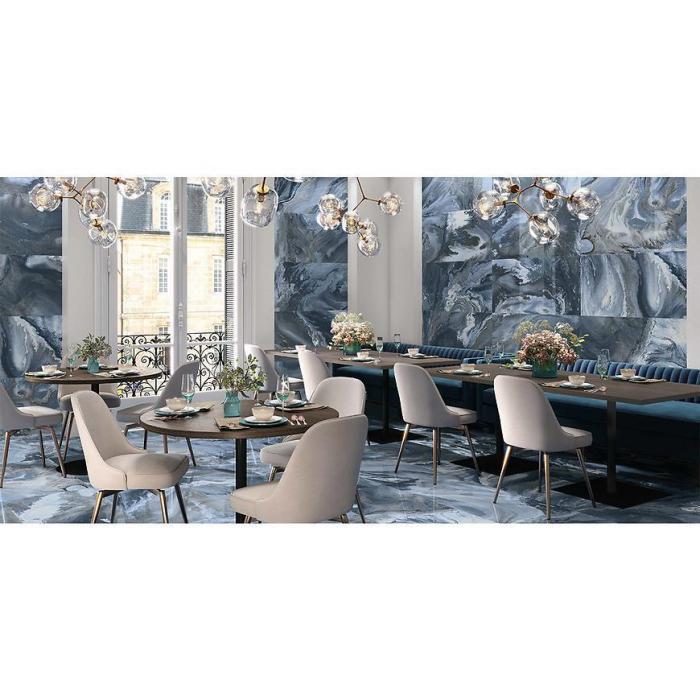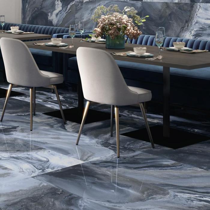 Intensywny niebieski odcień inspirowany naturalnym marmurem w połączeniu z subtelnymi żyłkami sprawia, że każda płytka jest wyjątkowa. Neutralny, a zarazem charakterystyczny kolor umożliwia tworzenie aranżacji zarówno nowoczesnych, minimalistycznych, jak i bardziej klasycznych. Dzięki uniwersalnemu wzornictwu płytka łatwo komponuje się z różnorodnymi elementami wykończenia wnętrz.