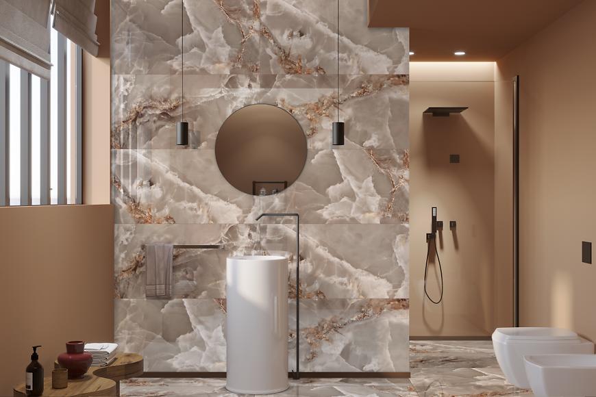 Gres Ocean Field High Glossy Rekt. 60×120 cm to luksusowa płytka bazowa z kolekcji OCEAN FIELD, inspirowana naturalnym marmurem w ciepłym, beżowym odcieniu. Polerowana i rektyfikowana powierzchnia nadaje wnętrzom elegancję i nowoczesny charakter, a mrozoodporność pozwala na zastosowanie także na zewnątrz. Klasa ścieralności 3 gwarantuje trwałość i funkcjonalność, idealną do podłóg i ścian w różnorodnych aranżacjach.
