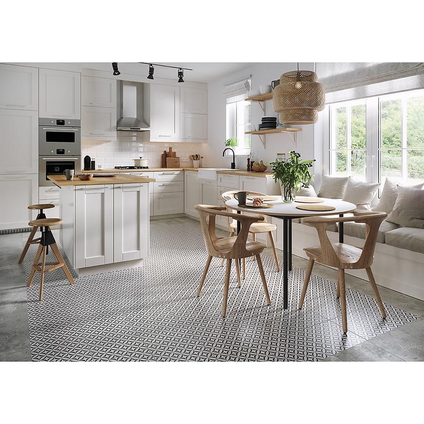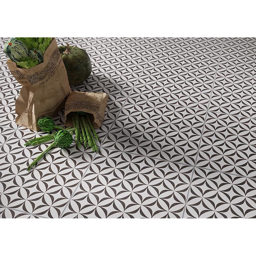 Gres Patchwork Vertigo Black 29,8x29,8 to płytka bazowa o matowej powierzchni, która wyróżnia się oryginalnym wzornictwem typu patchwork/carpet. Geometryczne motywy w odcieniach głębokiej czerni tworzą efektowny i dynamiczny wygląd, który idealnie podkreśla nowoczesne aranżacje wnętrz i przestrzeni zewnętrznych.