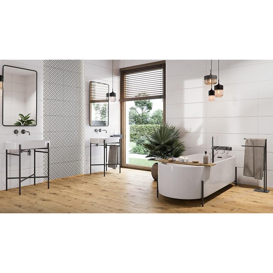 Gres Patchwork Vertigo Black jest uniwersalny i doskonale sprawdza się na ścianach i podłogach, pozwalając tworzyć spójne, nowoczesne aranżacje. Intensywna czerń w połączeniu z geometrycznym wzorem daje możliwość wyróżnienia dekoracyjnych akcentów lub stworzenia efektownej mozaiki, która przyciąga wzrok.