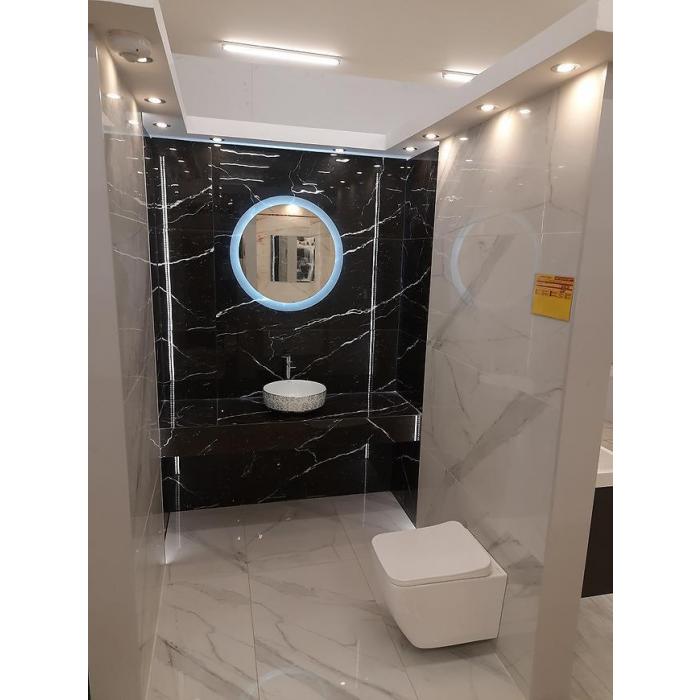 Płytka nadaje się zarówno do układania na podłogach, jak i na ścianach – w łazienkach, kuchniach, salonach oraz w przestrzeniach komercyjnych. Duży format i rektyfikowane krawędzie umożliwiają niemal bezfugowe układanie, co dodatkowo podkreśla efekt jednolitej, luksusowej powierzchni marmurowej. Polerowana powierzchnia jest łatwa w utrzymaniu czystości i zapewnia elegancki, prestiżowy wygląd wnętrza.