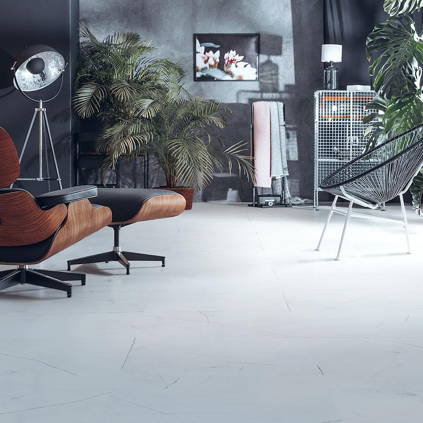 Matowa powierzchnia podkreśla naturalny wygląd marmuru, a biały kolor wnosi do wnętrz jasność i elegancję. Płytka pasuje do aranżacji nowoczesnych, klasycznych i minimalistycznych, harmonijnie łącząc się z drewnem, metalem oraz neutralnymi barwami.