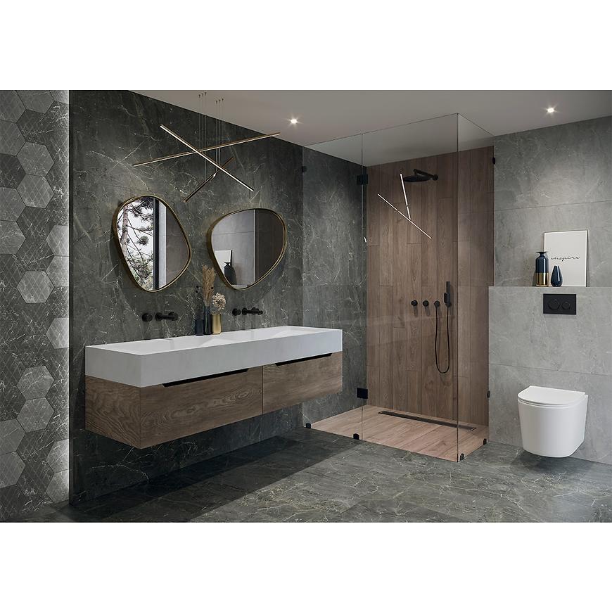 Płytka Wilton Grey 59,8/119,8 to wysokiej jakości produkt bazowy o wzorze imitującym marmur. Szary kolor i matowa powierzchnia nadają wnętrzom oraz przestrzeniom zewnętrznym elegancki i ponadczasowy charakter. Duży format 119,8 × 59,8 cm w połączeniu z grubością 0,8 cm pozwala na tworzenie jednolitych, harmonijnych powierzchni, które optycznie powiększają przestrzeń.